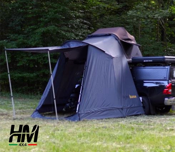 Roof Space lightweight base awning The Roof Space lightweight base awning gives you even more living space when camping with a rooftop tent. It creates a spacious extension, ideal for relaxing and socializing in the evening. It can be flexibly mounted and allows you to make the most of your space. With the awning, you maximize available space and comfort during your outdoor adventures.The light-based awning can be customized to suit your needs with the included telescoping poles. With the help of the telescopic poles, you can arrange all sides of the awning and use it as a large awning as well. But that's not all: if you have a flat or tall vehicle, the awning can be optimally adapted thanks to the included extension pole. Flexibility: customizable to your needs thanks to the included accessories. Easy assembly: Assembles in less than 6 minutes with good dexterity, even by yourself! Suitable even for taller vehicles: The lightweight base tent is designed so that it can be used even with a taller vehicle. Specifications: Weight: 6 kg Area: when mounted, the lightweight base provides a protected area of 7 square meters. Functionality: the roof awning can be fully closed even with the awning attached. Shipment includes: 1x awning with lightweight base 2x telescopic poles 1x awning pole 1x extension pole 8x stakes 2x anchor ropes NOTEThe light base tent is compatible with Roof Space 2 and the following models. Unfortunately, however, it is not suitable for the Roof Space One. The tent is also not equipped with an insertable floor.