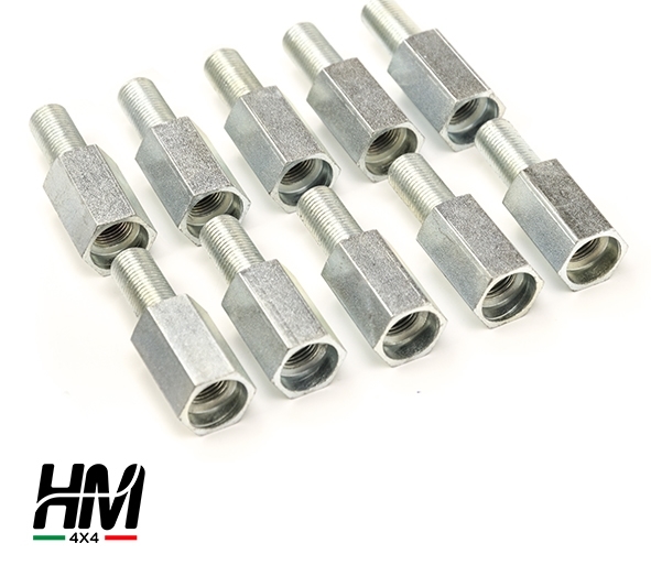Kit consisting of a 4 wheel spacers 30mm aluminum formed by forging and subjected to all the work necessary to obtain a product with the tolerances of the centering, parallelism thousandth and finishes between 1 and 3 Micron. The kit includes a complete set of elongated stud to screw the studs original, the spacer will be simply inserted between the wheel and hub, so the wheel will remain anchored to the original columns, the spacer also has support function of the columns, the system and tested and is normally used also means much more heavy of a suzuki. The spacers are made of aluminum alloy Zamak but using high purity now common in racing and aerospace field with outstanding qualities of resistance to thermal and mechanical stress. Increase the size of the roadway improves driving precision, significantly reduce body roll and weight transfer making the car more easy, safe and enjoyable to drive.