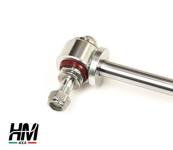 Ammortizzatore di sterzo completo di attacchi conici specifico per Toyota LJ70 e Toyota LJ73 isolati da boccole in poliuretano 80Shore A che sostituiscono le testine originali, molto meno prestaziionali e durature, idoneo sia per uso in competizioni impegnative che per uso stradale in quanto non indurisce lo sterzo.