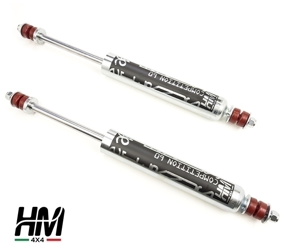 Gli ammortizzatori sono tarati in compressione come gli originali per favorire il comfort, ma maggiormente frenati in estensione per ridurre il saltellamento del veicolo. Tale taratura è studiata per adattarsi al meglio al fuoristrada Italiano ed è compatibile con ogni tipo di assetto; in fase d'ordine può essere scelta comunque quella desiderata senza sovrapprezzo.