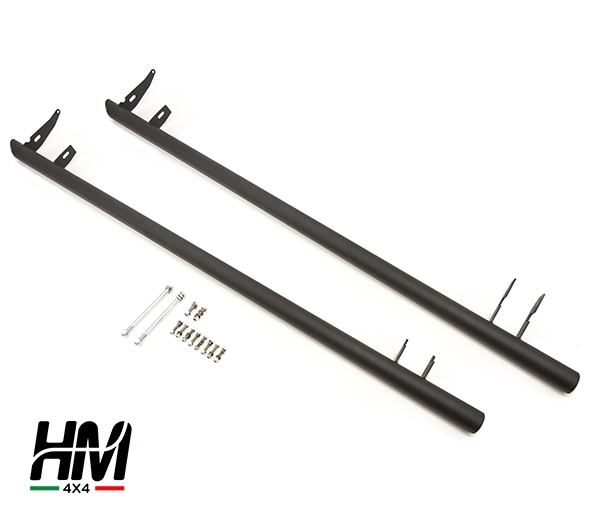 Coppia di protezioni laterali sottoporta per Defender 110 di qualsiasi anno e motorizzazione, realizzati in acciaio ad alto spessore saldato con tecnologia TIG, zincati e verniciati a polvere al poliestere particolarmente indicata per resistere agli agenti atmosferici esterni, sono costruiti in Italia.