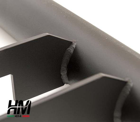 Lo spessore di 6mm costante sia per le piastre che per il tubo in caso d'urto distribuisce uniformemente il carico sul telaio del Defender.