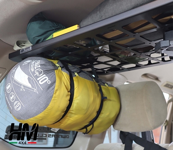 Se vi siete mai trovati di fronte alla sfida dello spazio limitato quando siete in viaggio, soprattutto durante le escursioni in fuoristrada, questo ripiano a soffitto è la soluzione definitiva. Offre un'area di stivaggio aggiuntiva che può fare la differenza nell'allestimento della vostra avventura.