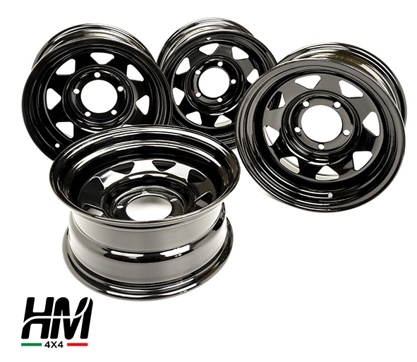 Kit composto da 4 cerchi da 15" in acciaio di alta qualità, con canale da 7", ET-30, colore nero.