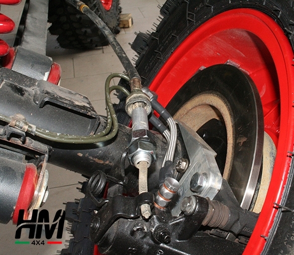 Permette di montare i freni a disco al posto dei tamburi posteriori dei Suzuki Jimny di qualsiasi anno per migliorare la frenata ed annullare l'usura delle ganasce.