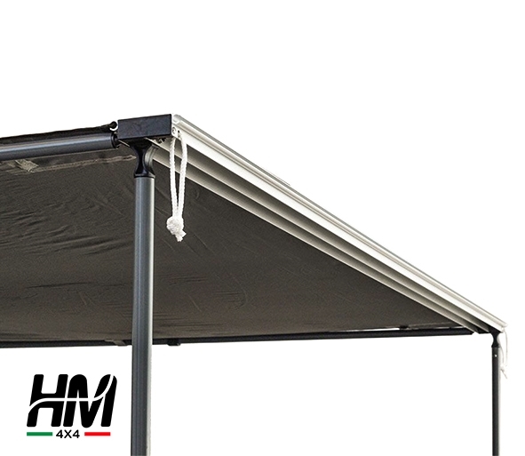 Si monta rapidamente e facilmente sul lato del portapacchi Front Runner per una protezione immediata dal sole o dalla pioggia.